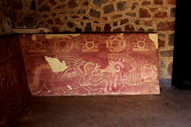 > We will visit the Temple of Quetzalcoatl where we can see incredible sculptures carved in stucco representing what perhaps was the most important god of the city, later we will visit The Palace of Quetzal-Papalotl and we will take a tour inside the palace, where we can find interesting murals of Jaguars and other deities.